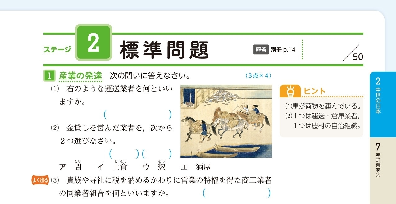 完全攻略 中学歴史 7 室町時代 ② くらしの変化と応仁の乱