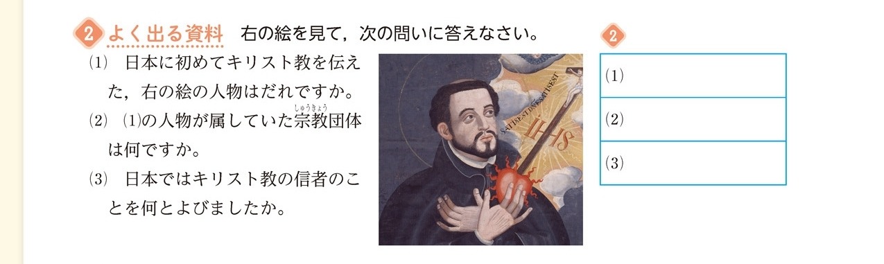 (1)フランシスコ・ザビエル (2)イエズス会 (3)キリシタン