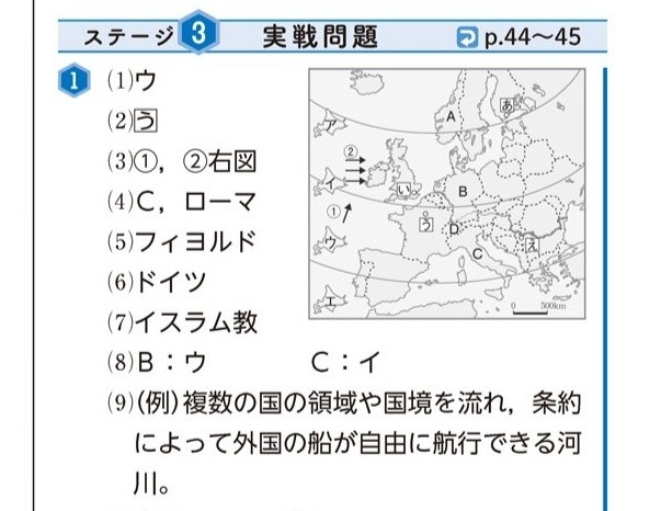 北海道とヨーロッパの緯度について学ぶ問題です。
